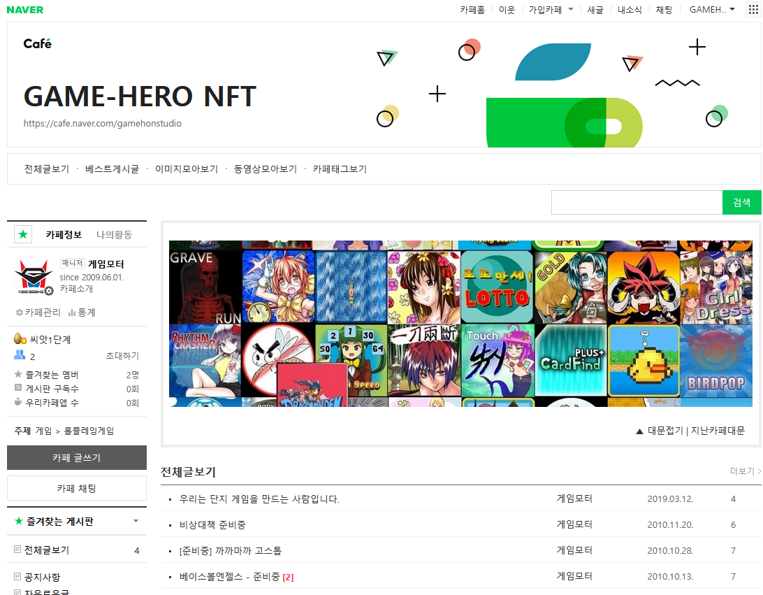 GAME-HERO NFT 민팅하고 소통창구를 어디로 할까 고민하다가 그냥 네이버 까페로 정했습니다.
