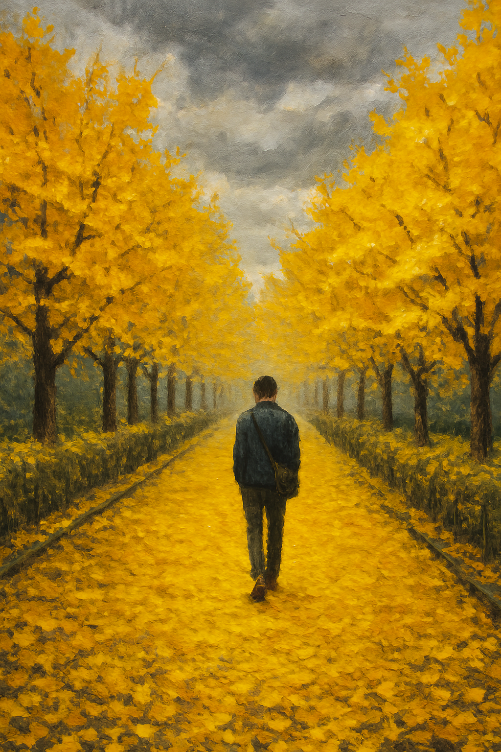 그만 어제의 걱정거리도 내일의 시름도 황금 빛 노랑 주단을 걸으며 잊었다.