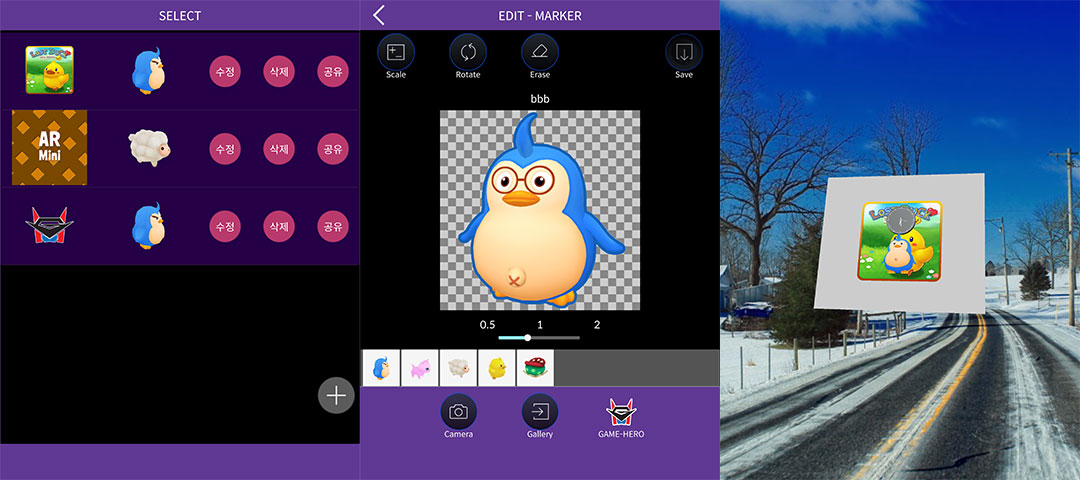 금번에 가진 기술을 조금씩 털어서 AR앱을 만들었습니다.