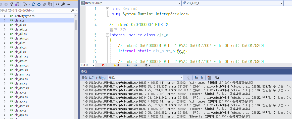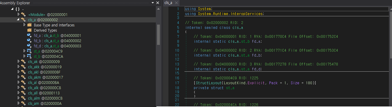 암튼 진행해서 보니 어이쿠...지금 수정된 화면에는 안나오지만 난독화시 내부 sealed 클래스 안에 상위와 같은 name을 줄 수 있는 옵션이 있는데 그것도 적용되었다. 역시 오랜세월 개발을 하신 교수님의 dll답다. 빈틈이 없네.