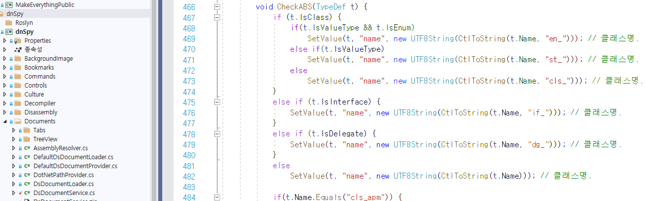 dnspy는 ilspy 코어를 활용하여 만들어진 디컴파일러로서 edit기능까지 갖춘 매우 훌륭한 도구이다.